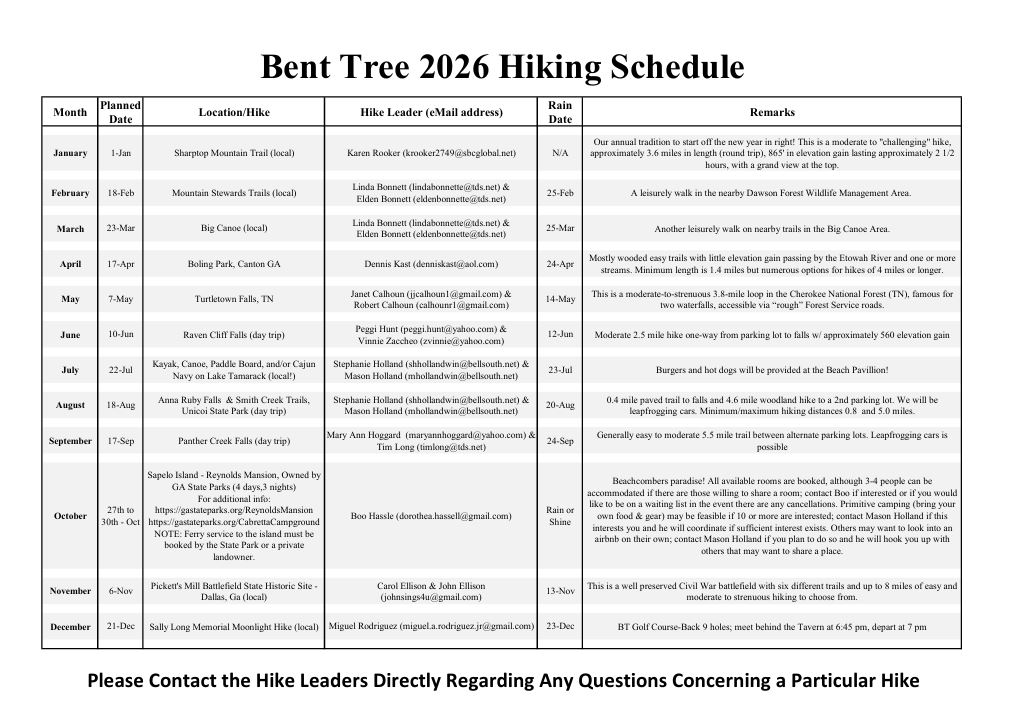 • If you would like to be added to the hiking club’s roster and receive notices of upcoming hikes, as well as any changes to the schedule, postponements, rain delays etc. email [email protected].